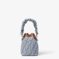 Iconic Mon Tresor bucket bag, distinguished by a timeless, compact and spacious silhouette. Made of a denim-effect FF jacquard in shades of blue. Trimmed with brown calfskin. Lined and with gold-finish metalware. Equipped with a handle decorated with small fringes and an adjustable, removable brown leather shoulder strap, the bag can be worn as a handbag, shoulder bag or cross-body bag. Holds a 6.7-inch smartphone, Mini Trifold card holder or wallet, keys and lipstick. Made in Italy Composition: 38% cotton, 21% polyamide, 21% polyurethane, 20% polyester, 100% calf leather, inside: 60% polyamide, 40% polyurethane Product Code: 8BS093AUT4F1SXQ