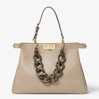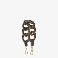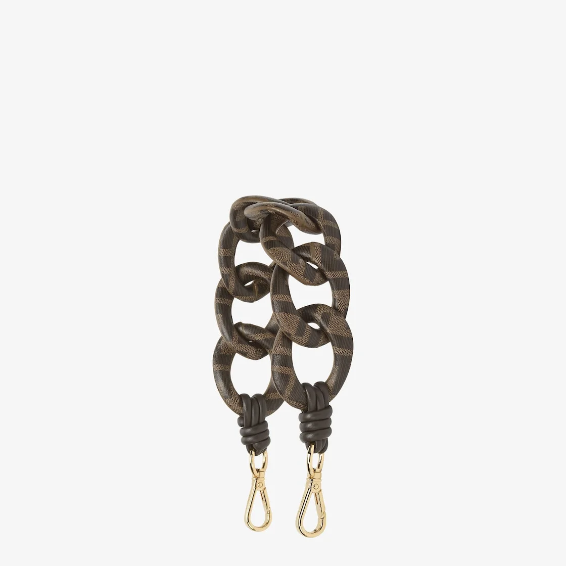 Short chain shoulder strap with double clip, to use in combination with any bag with hooks. Entirely bound in printed nappa leather with brown FF motif. Tone on tone interlaced leather details. Gold-finish metalware. Made in Italy Composition: 100% calf leather Product Code: 8AV937ASUWF1GQB