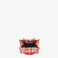 Sunshine Shopper mini bag made of leather printed with the Fendi Roma logo in white and red, reinterpreted by Marc Jacobs in an all-over, oversize style. Stiff plexiglass handles. Features a lined internal compartment, tone on tone leather edges and palladium-finish metalware. Embellished with the exclusive Fendi Roma Marc Jacobs New York City label. Can be carried by hand or worn on the shoulder thanks to the two handles and thin adjustable detachable shoulder strap. Made in Italy Composition: 100% calfskin, inside: 60% polyamide, 40% polyurethane Model height: null Size worn: null Measurements: - Height : 18 cm - Depth : 6.5 cm - Width : 13 cm Product Code: 8BS051AMWKF1KG1