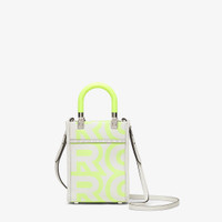 Mini Sunshine Shopper bag. Part of the Fendi by Marc Jacobs limited edition, this style is made of white leather with Fendi Roma lettering printed in neon yellow. Stiff, neon yellow plexiglass handles. Features a lined internal compartment, tone-on-tone leather edges and palladium-finish metalware. Can be carried by hand or worn on the shoulder thanks to the two handles and thin adjustable detachable shoulder strap. Made in Italy Composition: 100% Calfskin, interior: 100% Calfskin, 60% Polyamide, 40% Polyurethane Model height: null Size worn: null Measurements: - Height : 18 cm - Depth : 6.5 cm - Width : 13 cm Product Code: 8BS051ANXZF1LAJ