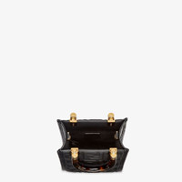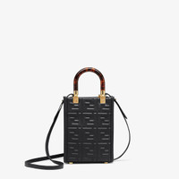 Mini Sunshine Shopper bag made of black leather with 3D texture FF motif and rigid tortoiseshell-effect plexiglass handles. Features a lined internal compartment, tone on tone leather edges and gold-finish metalware. Can be carried by hand or worn on the shoulder thanks to the two handles and thin adjustable detachable shoulder strap. Made in Italy Composition: 100% calf leather, inside: 90% polyester, 10% polyurethane Model height: null Size worn: null Measurements: - Height : 18 cm - Depth : 6.5 cm - Width : 13 cm Product Code: 8BS051AMCIF0KUR