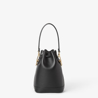 Iconic Mon Tresor bucket bag, distinguished by a timeless, compact and spacious silhouette. The soft knotted drawstring is finished with metal ends. Made of black calf leather. Lined and with gold-finish metalware. The double handle and adjustable and detachable shoulder strap for carrying the bag by hand on the shoulder or cross-body. Holds a 6.7-inch smartphone, Mini Trifold card holder or wallet, keys and lipstick. Made in Italy Composition: 100% calf leather, inside: 60% polyamide, 40% polyurethane Product Code: 8BS109AYJ1F0KUR