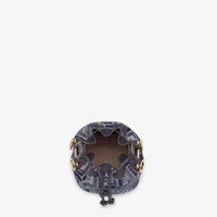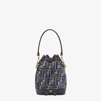 Iconic Mon Tresor bucket bag, distinguished by a timeless, compact and spacious silhouette. Made of chenille with the iconic FF motif in dark blue gradient tones and dark blue calfskin trims. Lined and with gold-finish metalware. The double handle and adjustable and detachable shoulder strap for carrying the bag by hand on the shoulder or cross-body. Made in Italy Composition: 58% cotton, 37% viscose, 5% polyester, 100% calf leather, inside: 60% polyamide, 40% polyurethane Product Code: 8BS093ASU0F1PQK