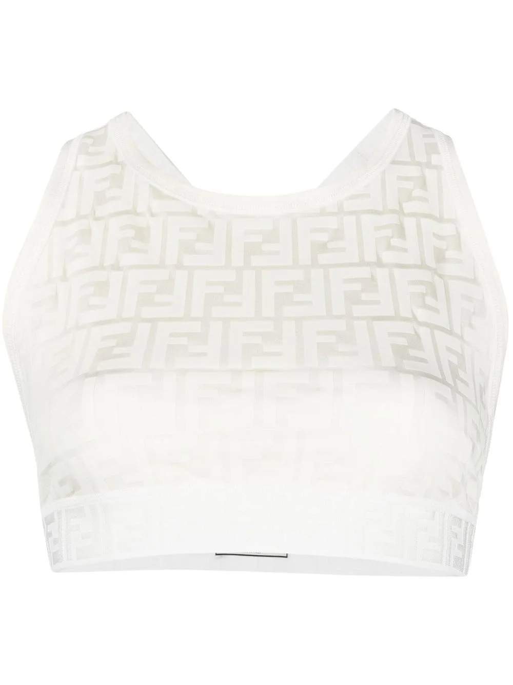 monogram-pattern cropped top Fendi's iconic FF monogram was famously created by Karl Lagerfeld in 1965. Used as an all-over pattern on this crossover-strap cropped top, it highlights the history of the brand in a contemporary way. Made in Italy Composition Polyamide 80%, Spandex/Elastane 20% Washing instructions Hand Wash
