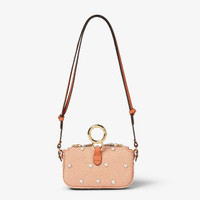 Nano version of the iconic Baguette bag, with flap and FF fastening with magnetic clasp. The clip allows it to be attached like a charm to larger bags or belts. It can also be carried under the arm or by hand thanks to the slender adjustable, detachable leather shoulder strap. Credit card holder flat pocket inside. Made in denim-effect fabric in shades of orange, embroidered with multicolor beads, crystals and sequins to create a three-dimensional Fendi Flower Bouquet motif. Gold-finish metalware. Made in Italy Composition: 100% cotton, embroidery: 100% metal, 100% calf leather, inside: 100% sheep leather Product Code: 7AS336AUQYF1SNQ