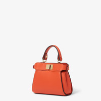 Iconic Nano Peekaboo bag with every detail recreated. Featuring a leather-lined interior, two compartments separated by a stiff partition, a removable handle with two snap buttons and the classic twist lock. It can be carried by hand or worn cross-body thanks to the fine chain shoulder strap. Made of orange nappa leather. Gold-finish metalware. It can hold a Fendi mini fragrance, a card, headphones, keys and a lipstick. Made in Italy Composition: 100% lamb leather, inside: 100% sheep leather Product Code: 7AS294ABVEF1SKH