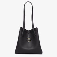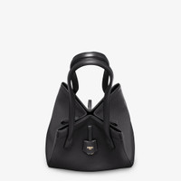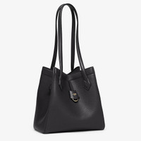Medium Origami bag made of black full-grain leather. The style recalls the creativity and dual nature of Fendi with an innovative design that can be transformed. Thanks to eight concealed magnets the bag can be styled as a shopper bag or bucket bag by folding it origami style. It comes with a key case charm with the word Fendi in metal. Lined inner compartment and gold-finish metalware. It can be carried by hand or worn on the shoulder thanks to 2 leather handles. Made in Italy Measurements: - Height : 27 cm - Depth : 16.5 cm - Width : 27 cm - Weight : 0.5 kg Composition: 100% calfskin, inside: 60% polyamide, 40% polyurethane Product Code: 8BH414APZAF0KUR