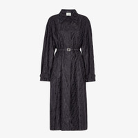 Long, single-breasted overcoat. Shirt collar and long raglan sleeves with straps at the cuffs. Welt pockets on the sides. Concealed closure. Made of jacquard fabric with iconic black FF motif. Matching belt with gold-colored metal FF buckle. Made in Italy Composition: 64% cotton, 36% polyamide, lining: 100% viscose, buttons: 100% mother of pearl Product Code: FF8998AM3UF0GME