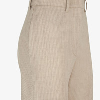 Slim-fit pants slightly flared at the hem. Belt loops at the waist. Concealed zipper and hook closure. Made of beige pinstriped wool flannel. Made in Italy Composition: 100% Wool Model height: 179 cm Size worn: 38 IT Product Code: FR6511AM3PF1M2A