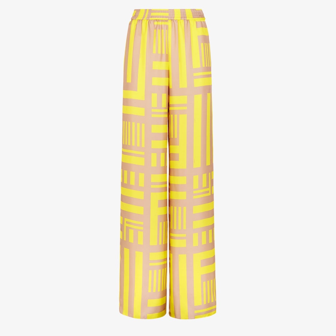 Flowing pyjama pants. Elastic waistband and side pockets. Made of silk twill with a golden yellow all-over Fendi Labyrinth print. Made in Italy Composition: 100% silk Size worn: 38 IT. The model is 178 cm tall Product Code: FR6494AWZTF0DM7