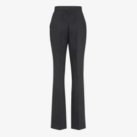 Straight, tailored pants lightly, flared at the hem. Side pockets and trouser crease. Concealed zipper and hook closure. Made of black pinstriped wool. Made in Italy Composition: 97% fleece wool, 2% elastane, 1% polyester Product Code: FR6600ASZ3F0GME