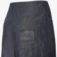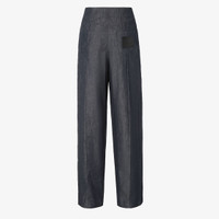 High-waisted, wide-leg pants. Five-pocket style with stitched trouser crease and belt loops at the waist. Covered zipper and matching covered button fastening. Made of ultra-light denim chambray. Customized with Fendi Roma leather patch on the back. Made in Italy Composition: 100% cotton Size worn: 38 IT. The model is 178 cm tall Product Code: FLP878AVF2F0EX7