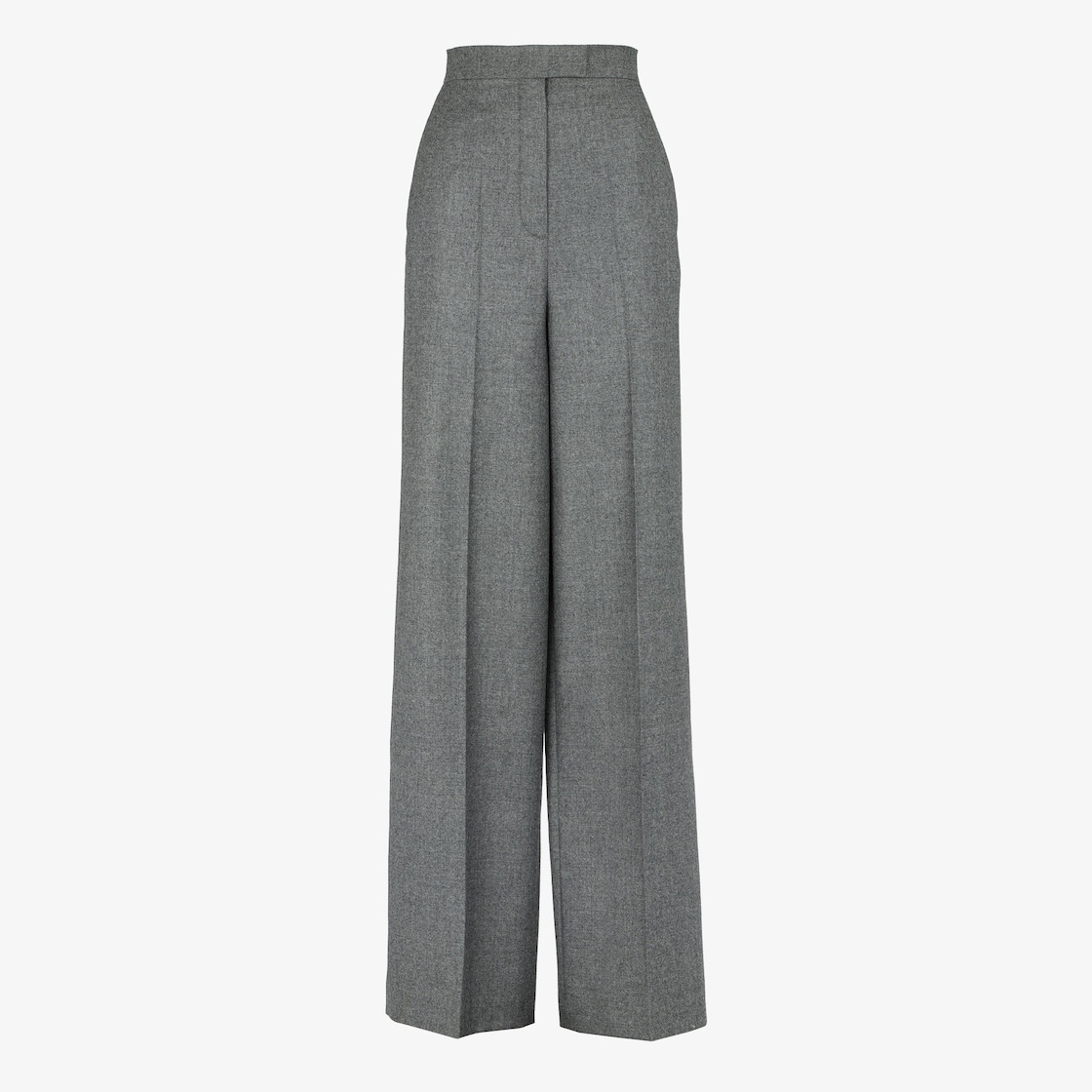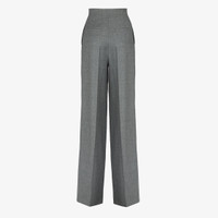 High-waisted, tailored palazzo pants. Ironed crease, inset side pockets and back welt pockets. Concealed zipper and small hook closure. Made of light gray mélange wool flannel. Made in Italy Composition: 100% wool Product Code: FR6375AM3NF0TDR