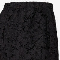Straight-leg pants with internal slits at the hem. Side pockets and welt pockets on the back. Concealed zipper closure. Made of black lace with an archive floral motif for a see-through effect. Garment fit can be modified using the elastic strap inserted in the back waist with buttonhole adjustment. Featuring removable culottes in the same tones. Made in Italy Composition: 48% cotton, 42% viscose, 10% polyamide, pockets: 62% cupro, 38% silk, 9 buttons: mother of pearl Product Code: FR6730AW9DF0GME