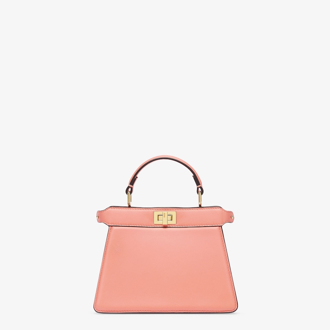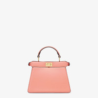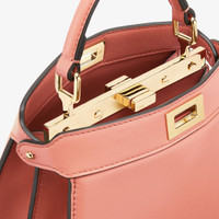 Iconic small Peekaboo ISeeU bag, the epitome of Fendi craftsmanship and creativity. A timeless icon, the Peekaboo was created in 2009. Like the children’s game it takes its name from, peek-a-boo, the bag plays with the beauty showcased on the outside and that concealed on the inside. Made of soft pink padded nappa leather. Featuring interiors lined in pink nappa leather, internal compartments separated by a stiff partition and an inner pocket. Gold-finish bar, closure and metalware. Decorated with the iconic twist lock on both sides. The bag can be carried by hand or worn either on the shoulder or cross-body thanks to the handle and adjustable, detachable shoulder strap. Made in Italy Composition: 100% lamb leather, interior: 100% lamb leather Product Code: 8BN335ABVEF1PJ7