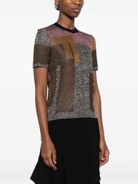 geometric-pattern T-shirt Highlights - Brown, multicoloured - Graphic pattern - Round neck - Short sleeves Made in Italy Composition Viscose 89%, Polyamide 8%, Polyester 3% Washing instructions Read Manufacturer Guidelines