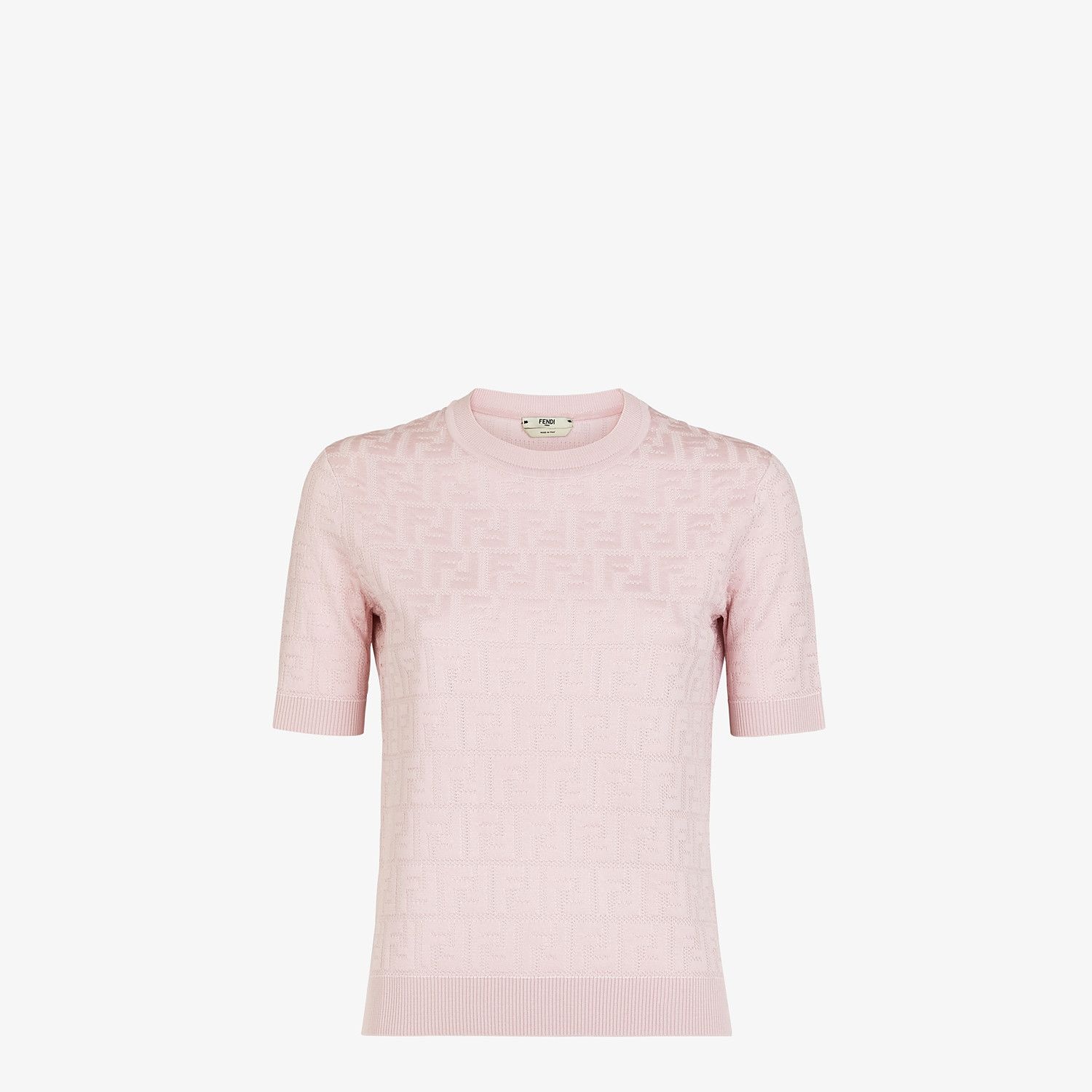 Slim-fitting, short-sleeved sweater. Made of pink cotton and viscose. Finished with mesh-effect knit and tonal FF pattern. Made in Italy PRODUCT INFORMATION - Product Code:: FZY934ABWQF052Z - Composition:: 54% Cotton, 45% Viscose