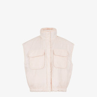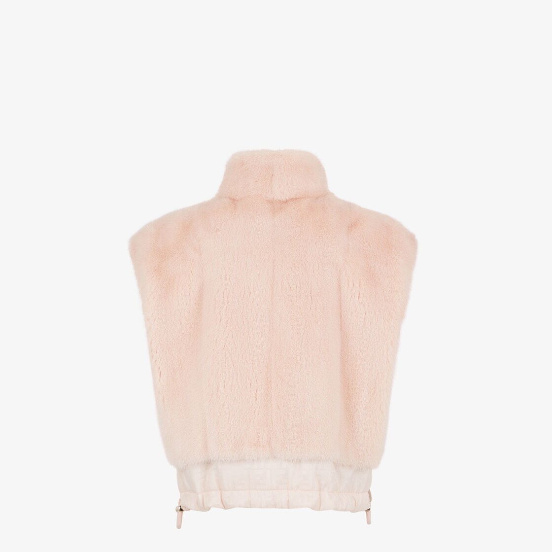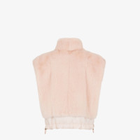 Short reversible vest with high collar and drawstring hem. One side has zipper pockets, the other high patch pockets with flap. Concealed closure. Made of pale pink mink. Nylon lining with FF motif in the same colors. Made in Italy Composition: : 100% Mink fur, trim: 100% Polyamide, lining: 100% Polyamide, padding: 100% Polyester Model height: null Size worn: null Product Code: FNH443AJQ7F11AS