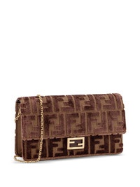 FF-motif chain shoulder bag Highlights - Chocolate brown - Chain detail - Adjustable strap - Logo plaque Made in Italy Composition Outer: Polyester 39%, Cotton 35%, Viscose 25%, other fibers 1% SIZE & FIT Measurement DEPTH 1.96 in(5 cm) HEIGHT 4.52 in(11.5 cm) WIDTH 8.26 in(21 cm)