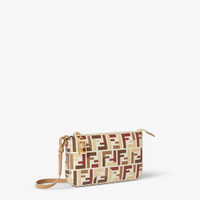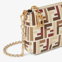 Baguette pouch made of fabric with iconic multicolored FF motif jacquard. Closed by zipper and zipper-pull with iconic FF motif. Lined interior, pocket with card holder slots and gold-finish metalware. It can be carried by hand, under the arm or cross-body thanks to the short, slim chain shoulder strap and long leather shoulder strap, both detachable. Holds a 6.7-inch smartphone and keys. The card holder is integrated inside the bag. Made in Italy Composition: 54% polyurethane, 22% polyamide, 12% cotton, 12% polyester, inside: 63% cotton, 34% polyester, 3% acrylic Product Code: 8BS073AV1YF1TVK
