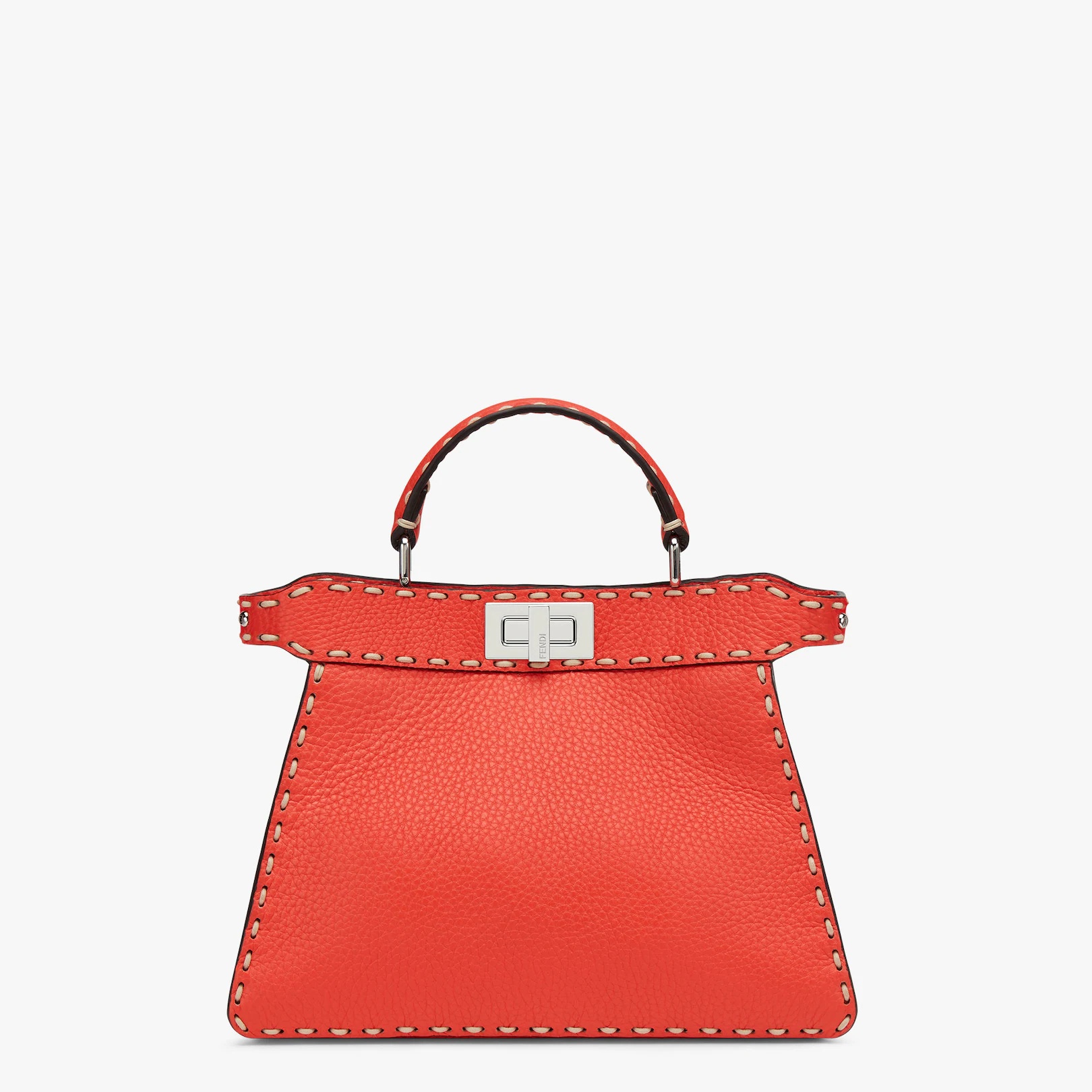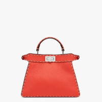 Small iconic Peekaboo ISeeU bag, made of red full grain leather with oversized hand stitching and embellished with the classic twist lock on both sides. Featuring a suede, tone-on-tone interior, two compartments separated by a stiff partition, an interior pocket with a button and vintage gold-finish metalware. The bag can be carried by hand or worn either on the shoulder or cross-body thanks to the handle and adjustable, detachable shoulder strap. Made in ItalyComposition: 100% Calfskin, inside: 100% Goatskin Measurements: Height: 21 cm Depth: 11 cm Length: 27 cm Weight: 0.6 kg Strap drop: 54.5 cm Product Code: 8BN327AFQ8F0PG3