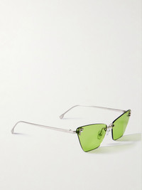 Rimless cat-eye crystal-embellished silver-tone sunglasses Green