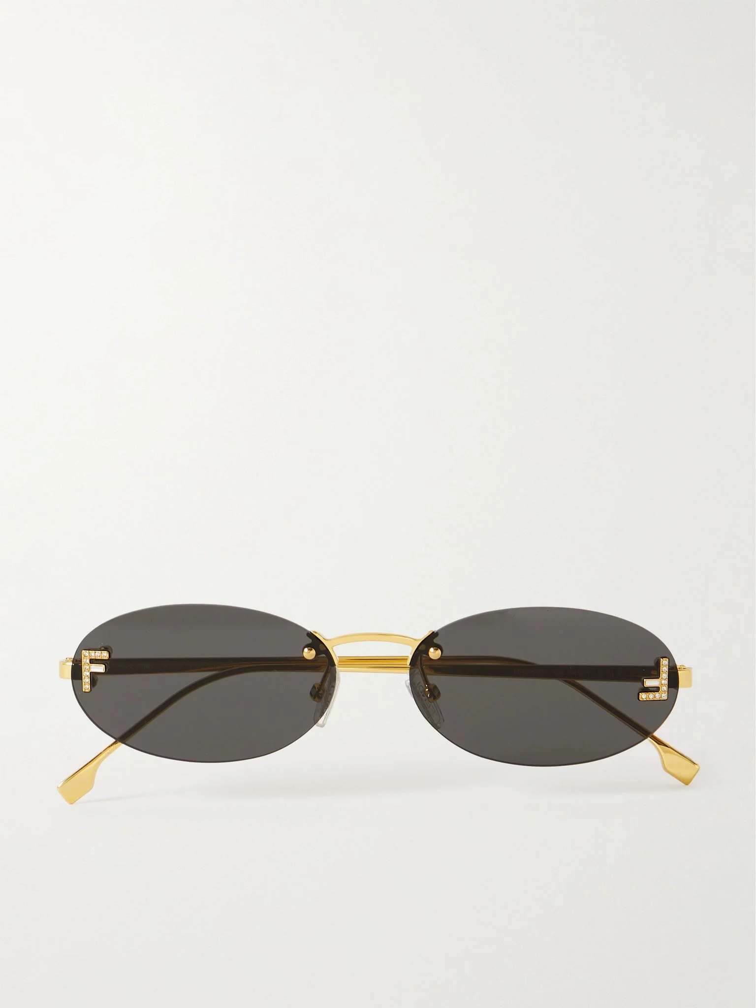 FENDI Eyewear's sunglasses have a rimless oval-frame shape inspired by those popular in the '90s and early aughts. They're made from gold-tone metal and feature tiny crystal-embellished 'F' emblems at the temples. Details & Care - Gold-tone metal - Come with a case - 100% UV protection