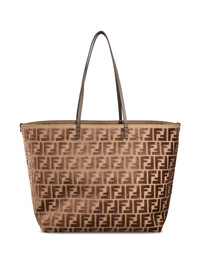 FF logo velvet tote bag Highlights - Brown - Velvet texture - Top handles - Zip fastening - Internal compartments Made in Italy Composition Polyester 56%, Cotton 40%, - 4%
