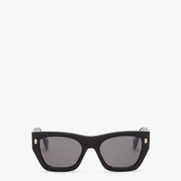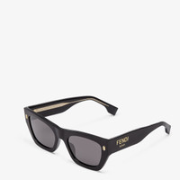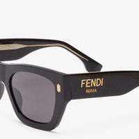 Rectangular Fendi Roma sunglasses in black acetate. Temples with visible metal core with laser etched FF. Gold finish Fendi Roma logo on the sides. Gray lenses. Made in Italy Composition: 59% acetate, 41% viscose Product Code: FOL063V1PF02N1 Product Care: Wash your eyeglasses every day with warm water and a pH-neutral soap.Do not use alcohol, aggressive chemical products or disinfectant wipes and do not dry them with paper or other cloths that could scratch them or leave streaks.Dry with a clean microfiber cloth.After use, always place the eyeglasses back in their case.