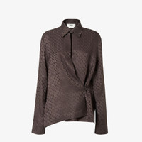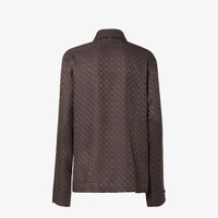 Long-sleeved shirt with a crossover silhouette. Shirt collar and wide buttoned cuff. The asymmetrical closure with a small side button creates a draped motif on the side and a cut-out detail on the neckline. Made of jacquard silk with an iconic dark brown checkered FF motif. Made in Italy Composition: 100% silk Size worn: 38 IT. The model is 180 cm tall Product Code: FS8287AUQGF1T6H