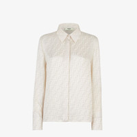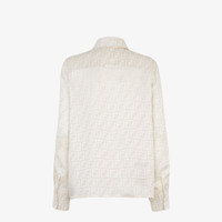 Oversized, flowing long-sleeved shirt. Classic pointed collar and straight hem. Concealed button closure. Made of cream silk crepe with all-over jacquard FF motif. Made in Italy Composition: 100% silk, buttons: 100% mother-of-pearl Fit: Over Size worn: 38 IT. The model is 178 cm tall Product Code: FS8140AJ0ZF1M2A