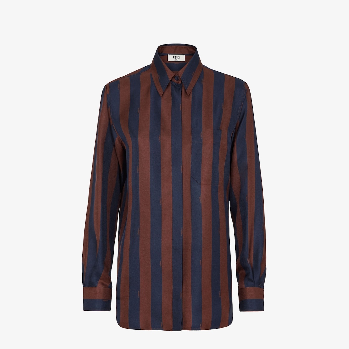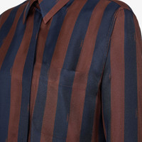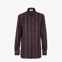Relaxed-fit shirt. Shirt collar and long sleeves with dropped shoulders. Front closure with concealed buttons. Made of silk with iconic navy blue and brown Pequin stripes. Made in Italy Composition: 100% silk, 9 buttons: mother of pearl Product Code: FS8190AWZVF1P2U