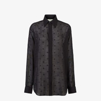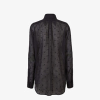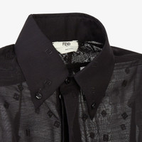 Flowing shirt with button-down collar and long sleeves with cuffs. Front fastening with covered buttons. The style belongs to the collection curated with designer Stefano Pilati and is made of an extremely lightweight black wool and silk gauze. Embellished with an all-over embroidered FF micro pattern in the same colors. Made in Italy Composition: 54% silk, 46% wool, buttons: 100% mother-of-pearl Size worn: 38 IT. The model is 177 cm tall Product Code: FS8155AXB9F0GME