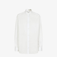 Shirt with mandarin collar and long sleeves. Rounded hem. Full-length button closure, front and back. Made of white cotton poplin. Embellished with FF logo embroidered on the left cuff. Made in Italy Composition: 100% cotton, 21 buttons: 100% mother of pearl Size worn: 38 IT. The model is 180 cm tall Product Code: FS8170ARU3F1F3H