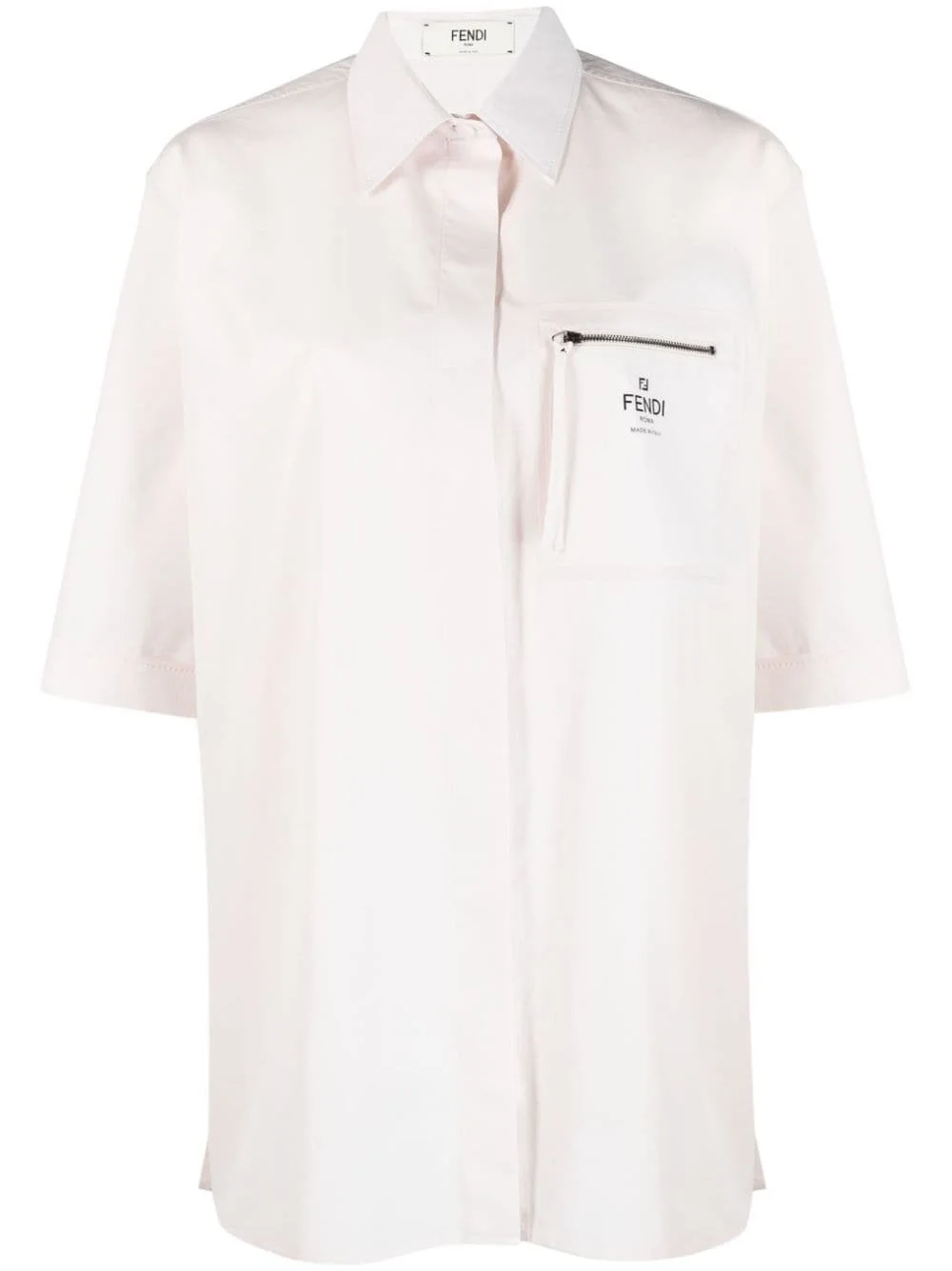 logo-print cotton shirt Fendi updates a classic cotton shirt with a subtle logo print that sits atop a contemporary zip-fastening chest pocket. Crafted from pure cotton, this iteration is delivered in an almond white. Highlights - Off-white - Cotton - Classic collar - Zip-fastening chest pocket - Logo print at the chest - Short sleeves - Concealed front button fastening - Straight hem Made in Italy Composition Cotton 100% SIZE & FIT Model measurements Height 5 ft 10 in(1.77 m) Bust/Chest 32.67 in(83 cm) Hips 35.43 in(90 cm) Waist 23.62 in(60 cm) FittingInformation Designed to be unstructured, offering a loose fit throughout Made from a midweight non-stretch fabric This piece fits true to size – take your usual size