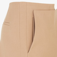 Straight-cut shorts. Side pockets and welt pockets on the back. Concealed front zipper closure. Made of beige grain de poudre wool. The front panel creates a miniskirt effect when worn. Made in Italy Composition: 100% Fleece wool, 100% Silk Size worn: 38 IT. The model is 178 cm tall Product Code: FR6607AJYFF1PNO