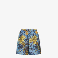 Shorts with elastic drawstring waist. Inset pockets on the hips. Made of Light blue FF nylon with all-over Falena print in black and yellow. Made in Italy Composition: 100% polyester, 100% calfskin parts, lining: 100% polyester Product Code: FAB408AT9DF1V3Y