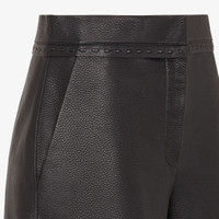Straight-cut shorts with side slant pockets. Concealed zipper and hook closure. Made of soft black hammered leather. Embellished with embossed Selleria micro stitching at the waist. Made in Italy Composition: 100% deer leather, 100% lamb leather, inside: 100% cupro, tag: 100% silver Size worn: 38 IT. The model is 180 cm tall Product Code: FPP813ARTZF0GME