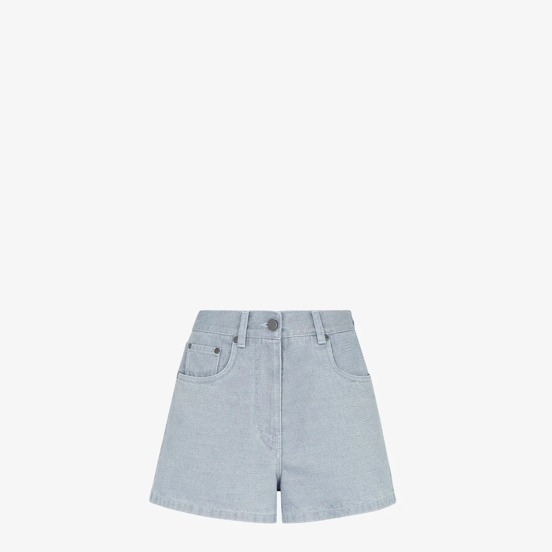 Flared five-pocket shorts. Belt loops at the waist. Concealed zipper and logo tack button closure. Made of light blue denim. Customized with Fendi Stamp 1925 patch on the back-right pocket. Tone-on-tone stitching and metal rivets. Made in Italy Composition: 100% cotton Size worn: 38 IT. The model is 179 cm tall Product Code: FLP861ASMBF1RX3