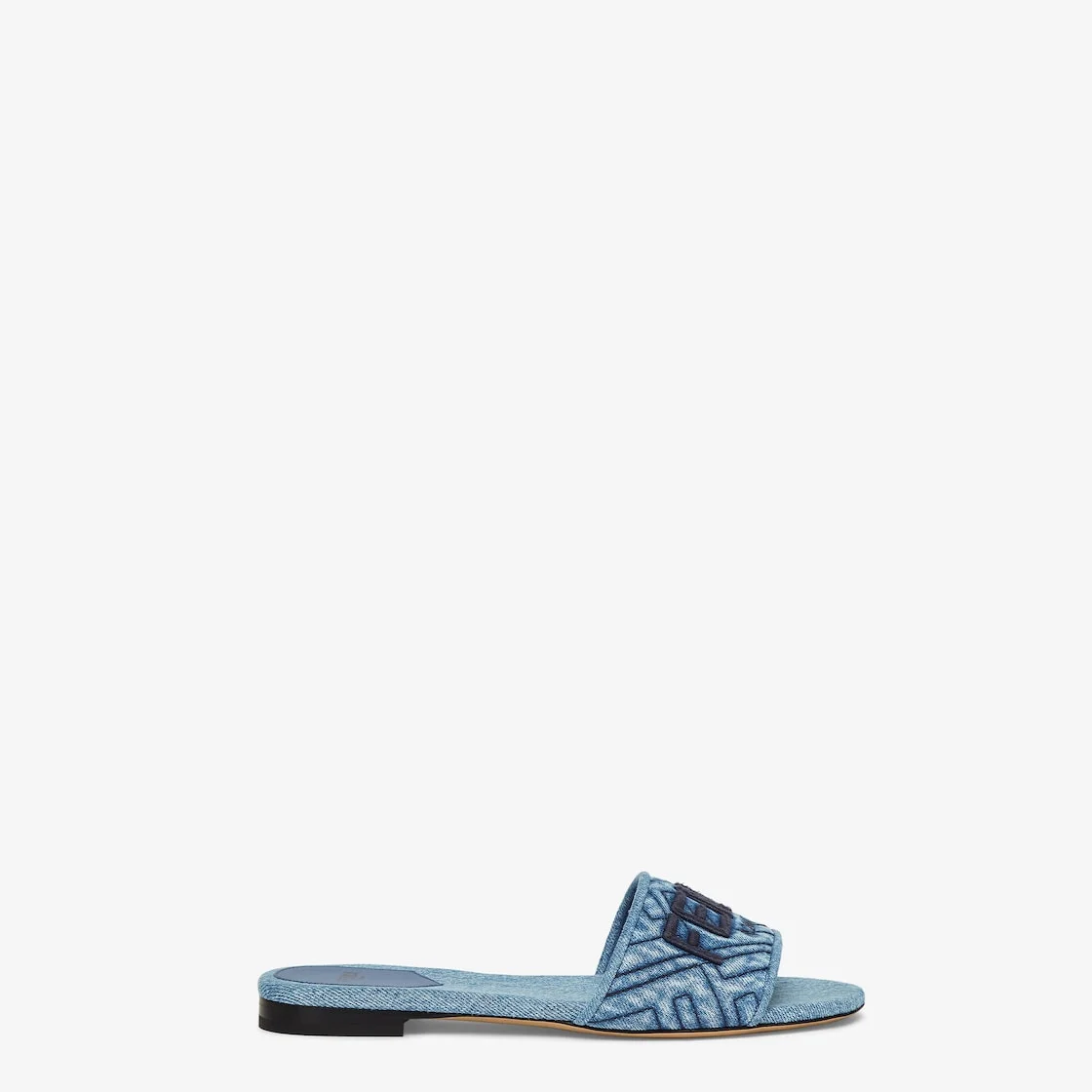 Wide-band slides. Made of a worn-look blue denim with an FF quilted motif. Blue thread Fendi Roma embroidery. 10 mm heel. Made in Italy Measurements: - Heel height : 10 mm Composition: 100% cotton, inside: 100% calf leather Product Code: 8R8092AQY3F1OW0