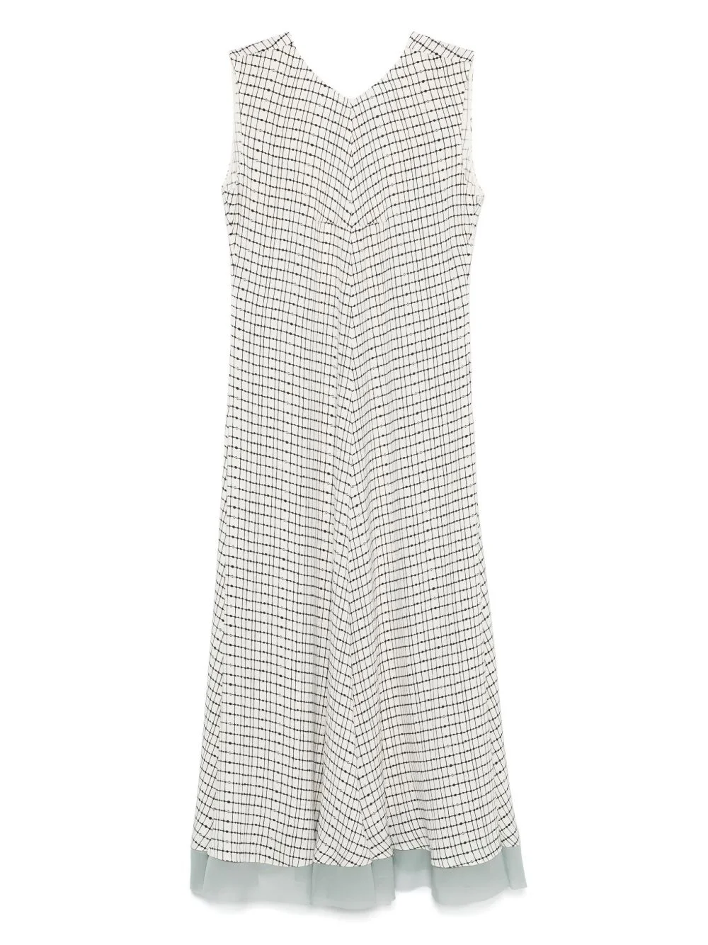 silk midi dress Highlights - White - Concealed side zip fastening - Sleeveless - V-back - Unlined Made in Italy Composition Silk 100% SIZE & FIT Model measurements Height 5 ft 10 in(1.77 m) Bust/Chest 33.07 in(84 cm) Hips 37 in(94 cm) Waist 24.8 in(63 cm) FittingInformation Designed for a close fit at the chest and waist with a loose fit at the hip Made from a midweight non-stretch fabric