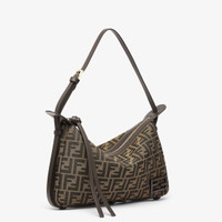 Medium Simply Fendi bag, a soft shoulder bag presented at the Fall-Winter 2024/25 fashion show, named after its elegant and essential design inspired by a 1990s archive style. Made of jacquard fabric with iconic brown FF motif. Decorated with the iconic FF embellishment in dark brown patent leather. Closed by a long, dark brown calfskin zipper-pull with knot and featuring an internal lined compartment with a zipper pocket and gold-finish metalware. Can be worn on the shoulder or cross-body thanks to the adjustable shoulder strap. Made in Italy Composition: 27% polyester, 27% polyamide, 27% polyurethane, 15% cotton, 4% resins, 100% calf leather, inside: 60% polyamide, 40% polyurethane Product Code: 8BR829AFPMF1GL7