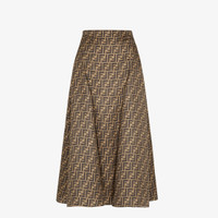 High-waisted skirt with a flowing, flared line. Back zipper closure. Made of silk twill with the iconic FF motif printed all over in brown. Made in Italy Composition: 100% Polyester, lining: 100% Silk Product Code: FQ7601A8G3F1440