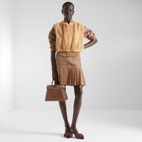 Short skirt with regular waist, featuring a fitted yoke at the waist and pleated skirt. Patch pockets on the front. Side zipper closure. Lined. Made of brown silk taffeta. Made in Italy Composition: 100% silk, lining: 100% silk Product Code: FQ7712AW7CF1UKH