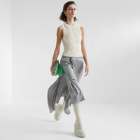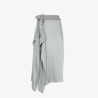Straight midi skirt. Side zipper closure. Made of gray viscose satin, featuring an asymmetric draped panel that is adjustable and removable by a zipper at the waist. Wide belt at the waist in mélange gabardine with matching covered buckle. Made in Italy Composition: 100%viscose Model height: 178 cm Size worn: 38 IT Product Code: FQ7449ANQ9F0RTU