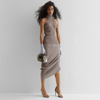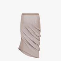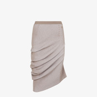 Midi skirt with elastic waist. Fitted silhouette with asymmetric draping at the hem. Made of a blend of dove gray wool and viscose. The ribbing creates movement and accentuates the elasticity of the texture. Embellished with matching embroidered Fendi Roma logo on the left side. Made in Italy Composition: 100% wool Size worn: 38 IT. The model is 175 cm tall Product Code: FZQ737ARV9F0U6W