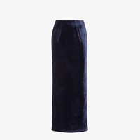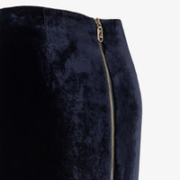 Long pencil skirt with fitted waist and back closure with metal double-slider zipper. Made of dark blue cut velvet. Gold-finish metalware. Made in Italy Composition: 100% viscose, 80% viscose, 20% silk Size worn: 38 IT. The model is 180 cm tall Product Code: FQ7517AM3ZF1M2F