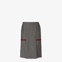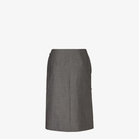 Straight-cut midi skirt with symmetrical slits at the front. Contrasting elastic straps on the sides, with buttonhole adjustment, to modify the fit and define the volume of the silhouette. Side pockets and zipper closure on the left side. Made of gray lightweight mohair. Lined in micro FF jacquard in the same tones. Made in Italy Composition: 76% fleece wool, 24% mohair, lining: 100% silk, 3 buttons: 100% mother of pearl Product Code: FQ7721AW7UF0TAZ