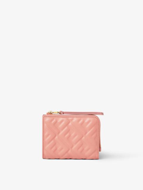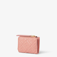 Baguette wallet with a compact and slim design, featuring an internal bill compartment, six card slots, an external zippered coin pocket and a long zipper pull decorated with an FF motif. Made of soft, pink nappa leather with the iconic FF motif embossed with a three-dimensional effect. Gold-finish metalware. Made in Italy Composition: 100% lamb leather, interior: 63% cotton, 34% polyester, 3% acrylic Product Code: 8M0519AAJDF13VM