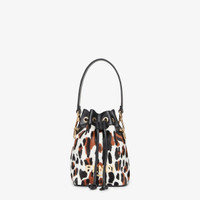 Small Mon Tresor bucket bag made of animal print sheepskin with gold-color metallic FENDI ROMA lettering. Lined interior, black leather details and gold-finish metalware. Featuring two detachable shoulder straps, one long and one short, to wear the bag over the shoulder or cross-body. Made in Italy Composition: : 100% Sheep fur, 100% Calfskin, inside: 63% Cotton, 34% Polyester, 3% Acrylic Model height: null Size worn: null Measurements: - Height: 18 cm - Depth: 10 cm - Width: 12 cm Product Code: 8BS010AMCLF0TMN